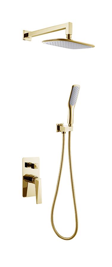 Смеситель встроенный + верхний душ + ручной душ ЗОЛОТО 384
