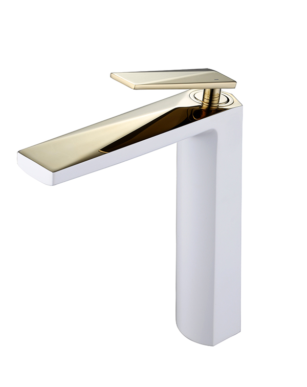 высокий смеситель для умывальника БЕЛЫЙ+ЗОЛОТО